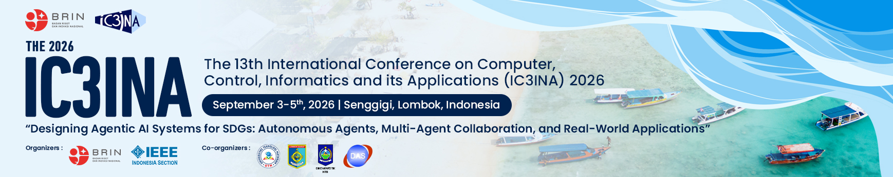The 13th International Conference on Computer, Control, Informatics, and its Applications (IC3INA) 2026 is an annual international conference organized by the Research Center for Data and Information Sciences (Pusat Riset Sains Data dan Informasi – PR SDI) under the Organization for Electronics and Informatics Research, National Research and Innovation Agency (Badan Riset dan Inovasi Nasional – BRIN), Indonesia. As a conference that has been consistently held for more than a decade, IC3INA has established itself as a reputable international forum for scientific exchange and technological innovation.